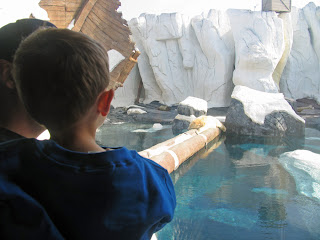 To complete the evening we went to the Shark Encounter, and to see the Beluga whales and the polar bears. We had a lot of fun. Josh, Dave and Caiden even got to touch the ice wall...that was a big hit. Overall, Caiden had a lot of fun, and he even got to take home his very own Shamu doll...presented by "Bob" the tour guide! :) Although I think the adventure proved too much for Josh and Caiden...they fell asleep before we even got home.