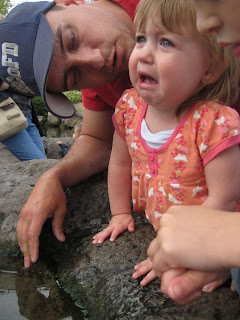 Kiya crying because the water was REALLY cold. Notice her wet hand :P
